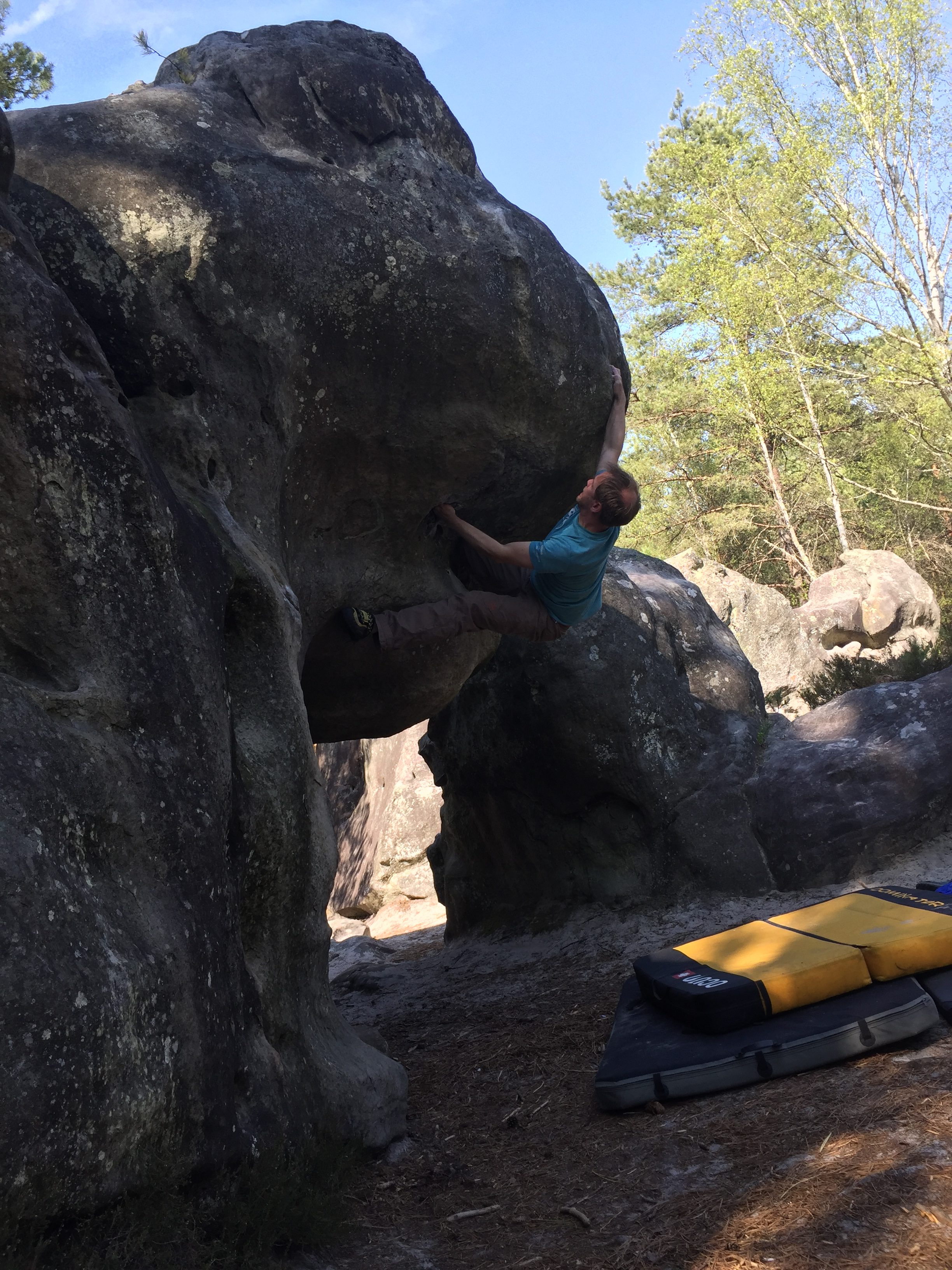 In diesem Jahr sind wir zusammen mit vielen Vereinsmitgliedern nach Fontainebleau zum Bouldern gefahren. Vom 17.4. bis 27.4 waren wir unterwegs. Wir hatten traumhaftes Wetter und freuten uns wieder einmal zurück zu kommen, denn jedes Jahr aufs Neue ist es ein ganz besonderes Ereignis- es fühlt sich an wie „Nachhause kommen“.
